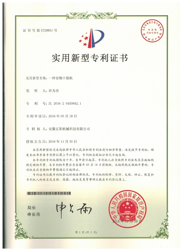 農(nóng)業(yè)機械推廣鑒定證書……