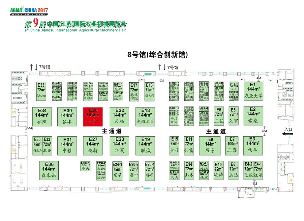 第9屆中國(江蘇)國際農(nóng)業(yè)機(jī)械展覽會(huì)展位分布圖:紅色區(qū)域